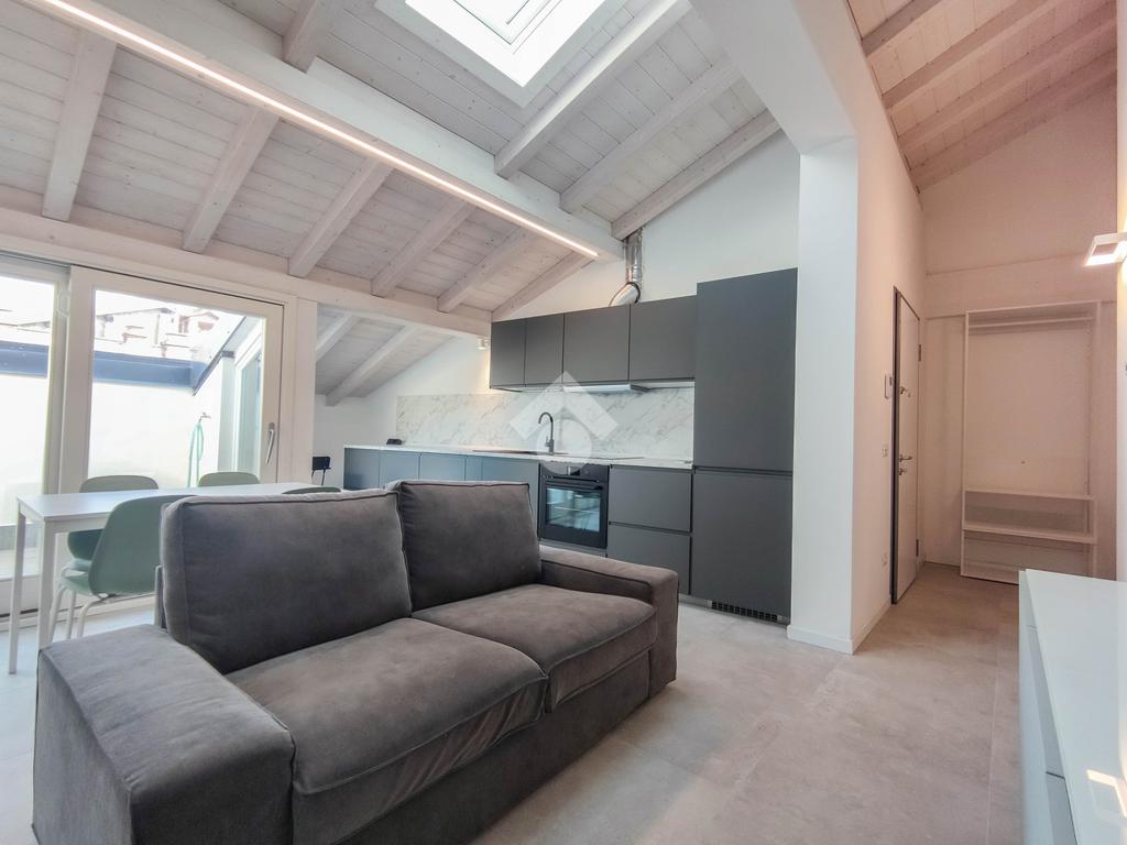 In zona centro storico di Carpi proponiamo bilocale mansardato di recentissima ristrutturazione, al piano terzo senza ascensore. L'immobile è composto da sala con anglo cottura con terrazzino, bagno, camera da letto matrimoniale,e cantina al piano COMPLETAMENTE, MANCA LA LAVATRICE.