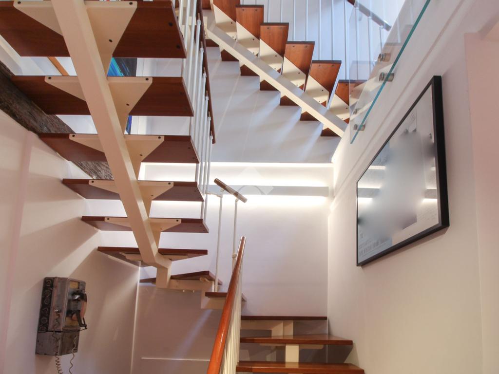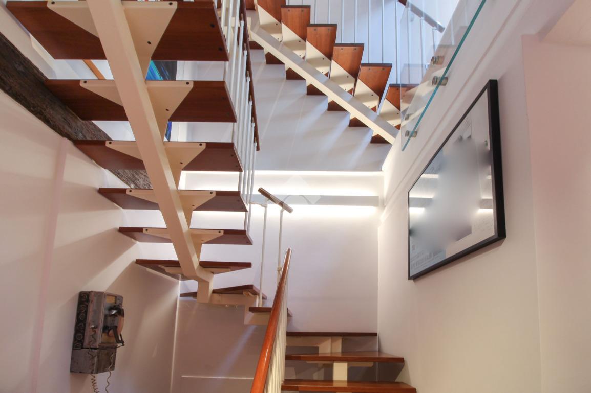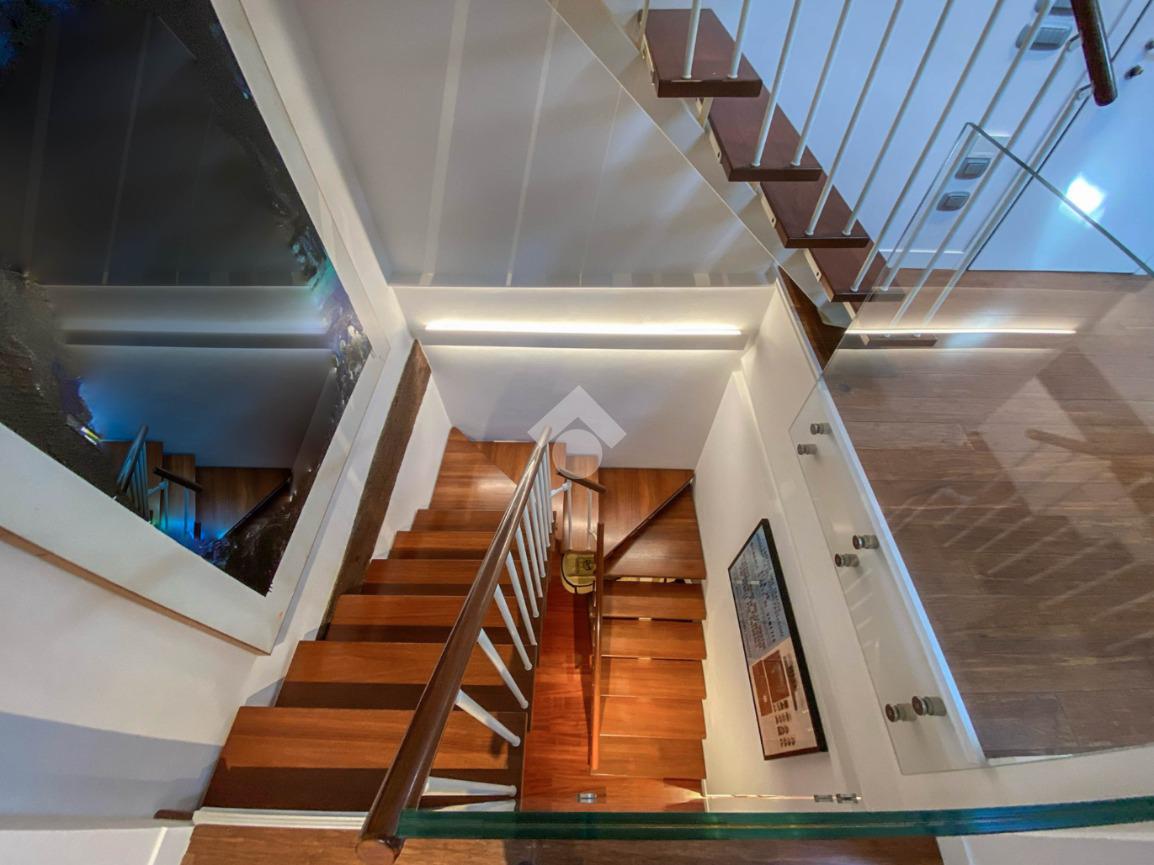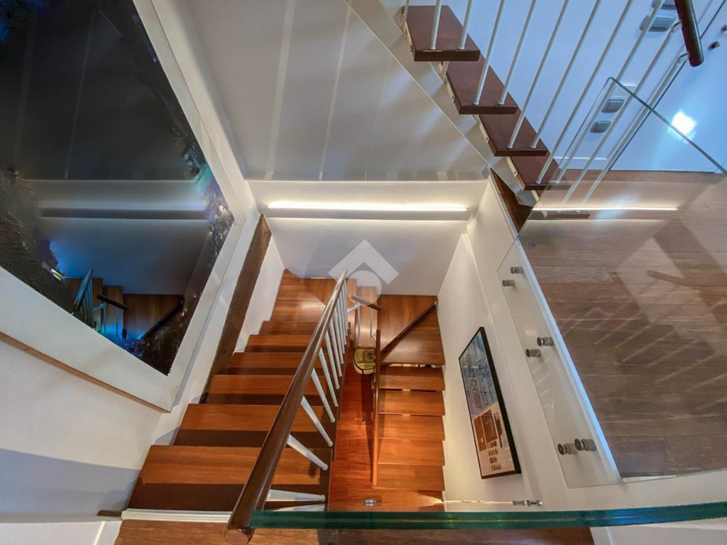 Distribuzione su tre livelli con eleganti giochi di doppi volumiTre bagni molto ben rifinitiPavimenti in legnoScale di design e parapetti in cristalloDesign contemporaneo di altissimo livelloRiscaldamento a pavimentoImpianto di climatizzazioneGarage privato nel cortile interno