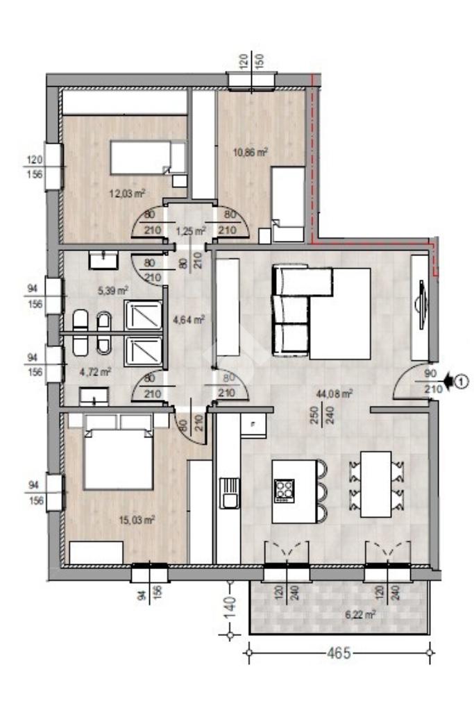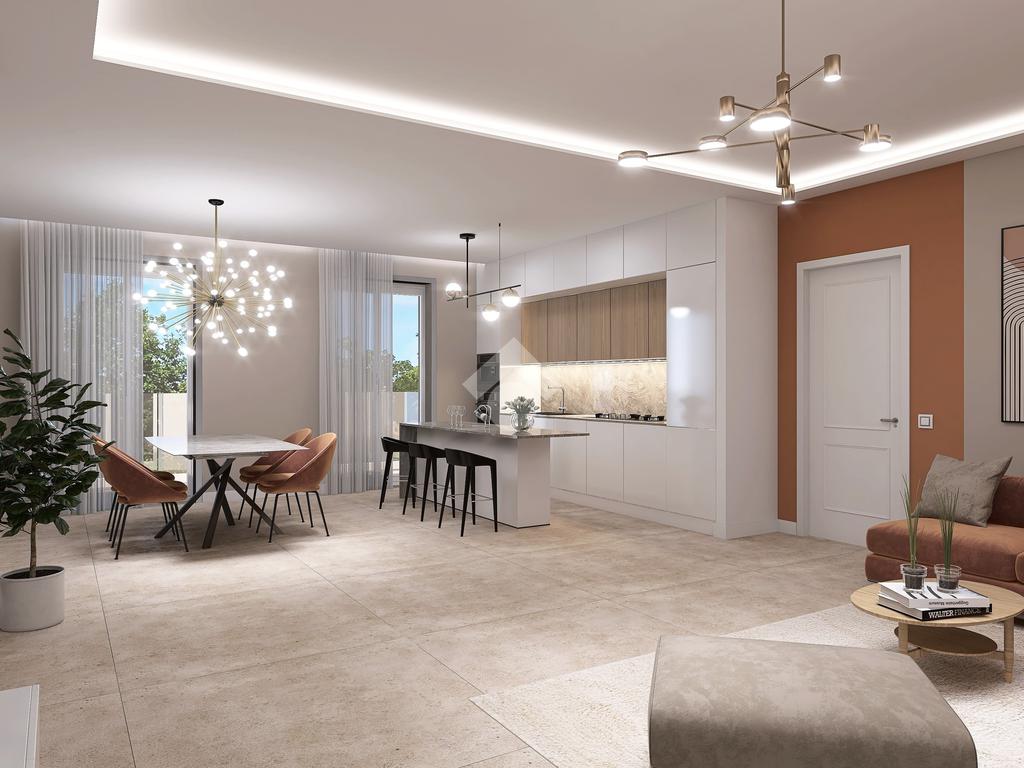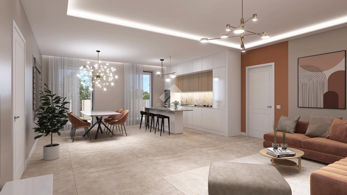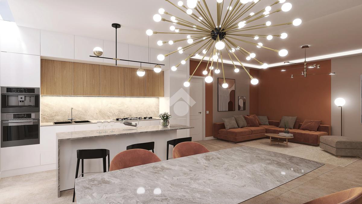 L'immobile di ampiametratura è composto da ingresso in soggiorno con cucina a vista e balcone, tre camere da letto, due bagni.
