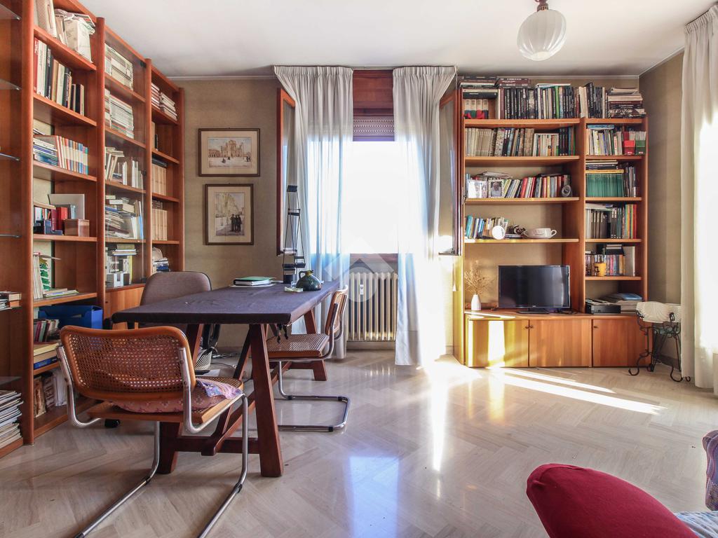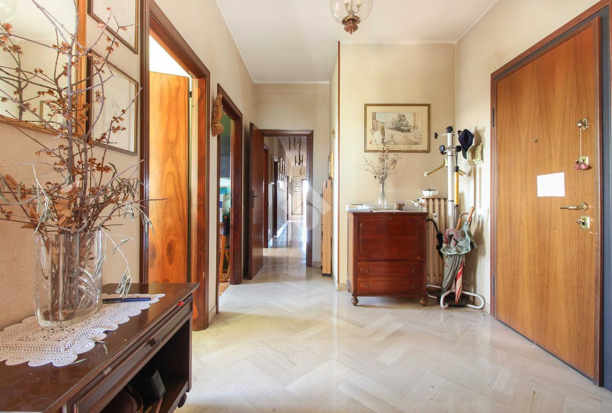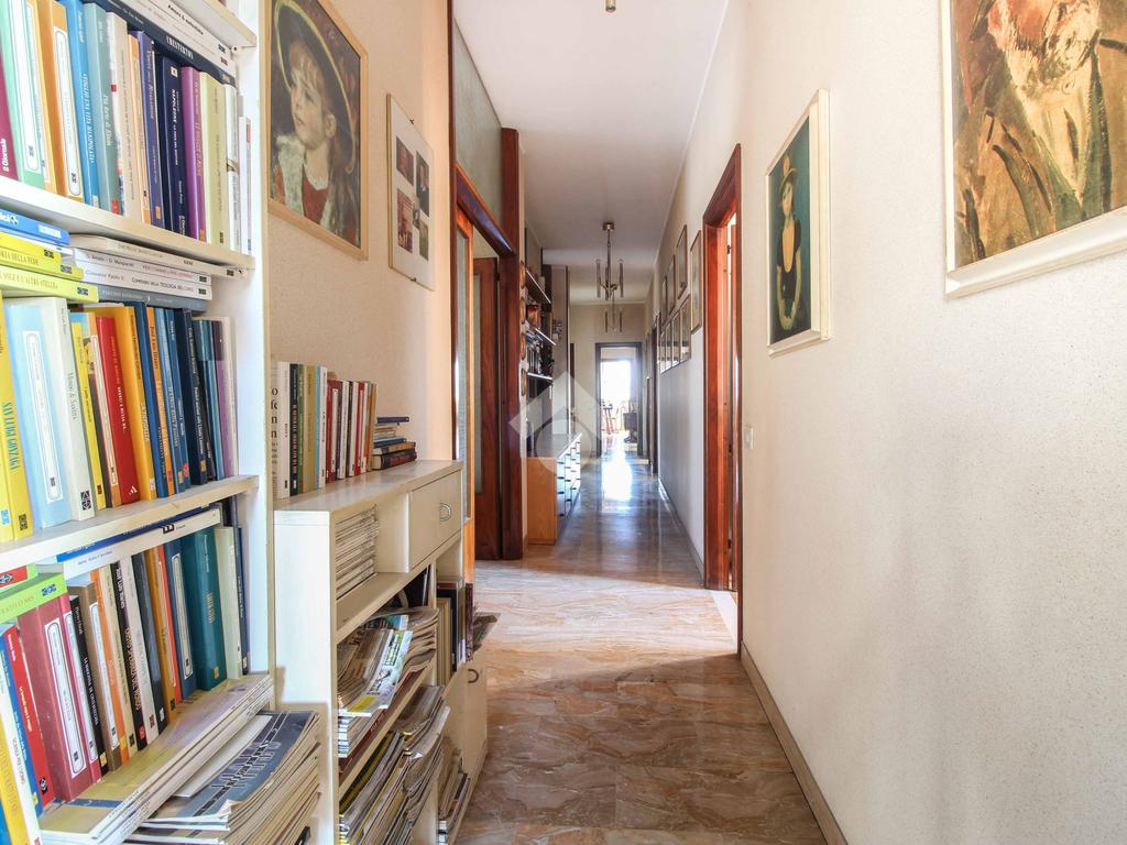In esclusiva, proponiamo un appartamento di oltre 200 mq commerciali, nato dall'unione di due unità attigue. Si trova al quinto piano con ascensore di una palazzina in pietra faccia a vista degli anni Settanta, ben tenuta e dotata di ampio cortile condominiale per il parcheggio auto.