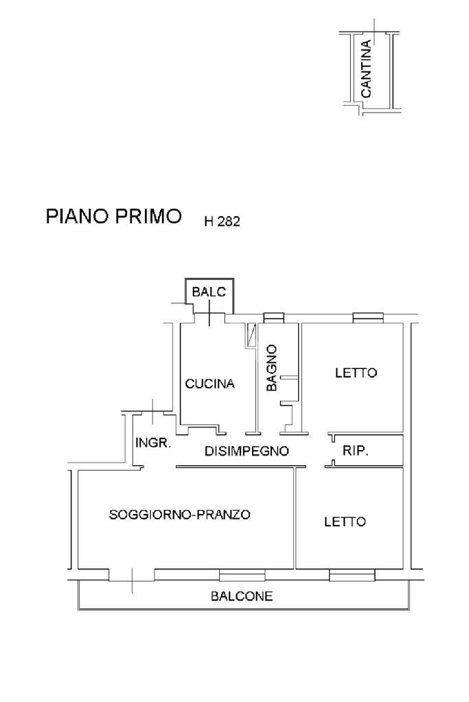 L'immobile è composto da ingresso, salone con balcone, cucina abitabile con balcone, due camere da letto matrimoniali ed il bagno. Cantina di proprietà al piano terra.
