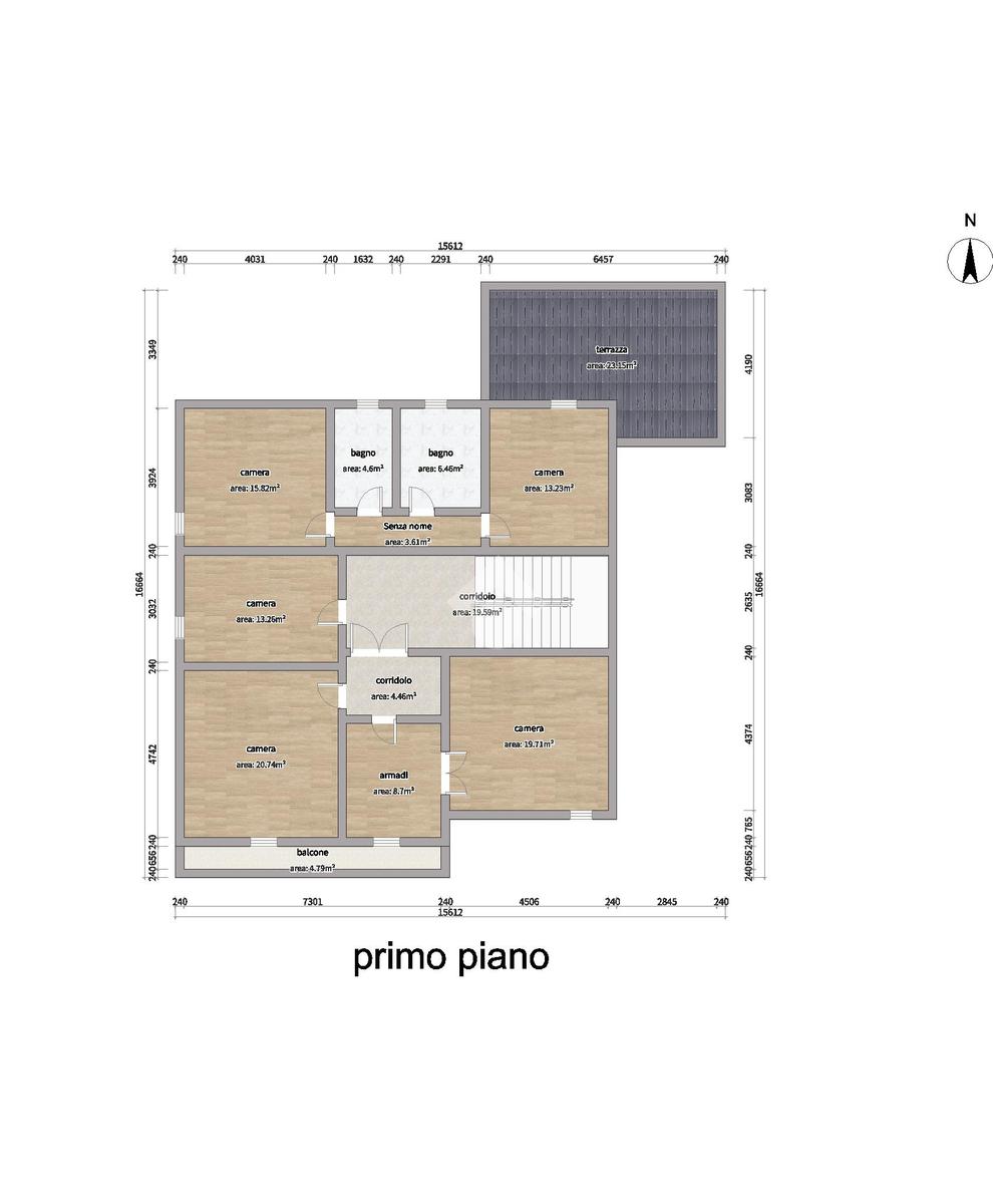 La zona notte ospita 5 spaziose camere da letto matrimoniali, tutte caratterizzate da ottime metrature e luminosità naturale. Due bagni garantiscono la massima comodità per tutta la famiglia. Un balcone si estende lungo tutto il fronte strada, mentre il terrazzo di quasi 30 mq rappresenta un ulteriore e godibile spazio all’aperto.